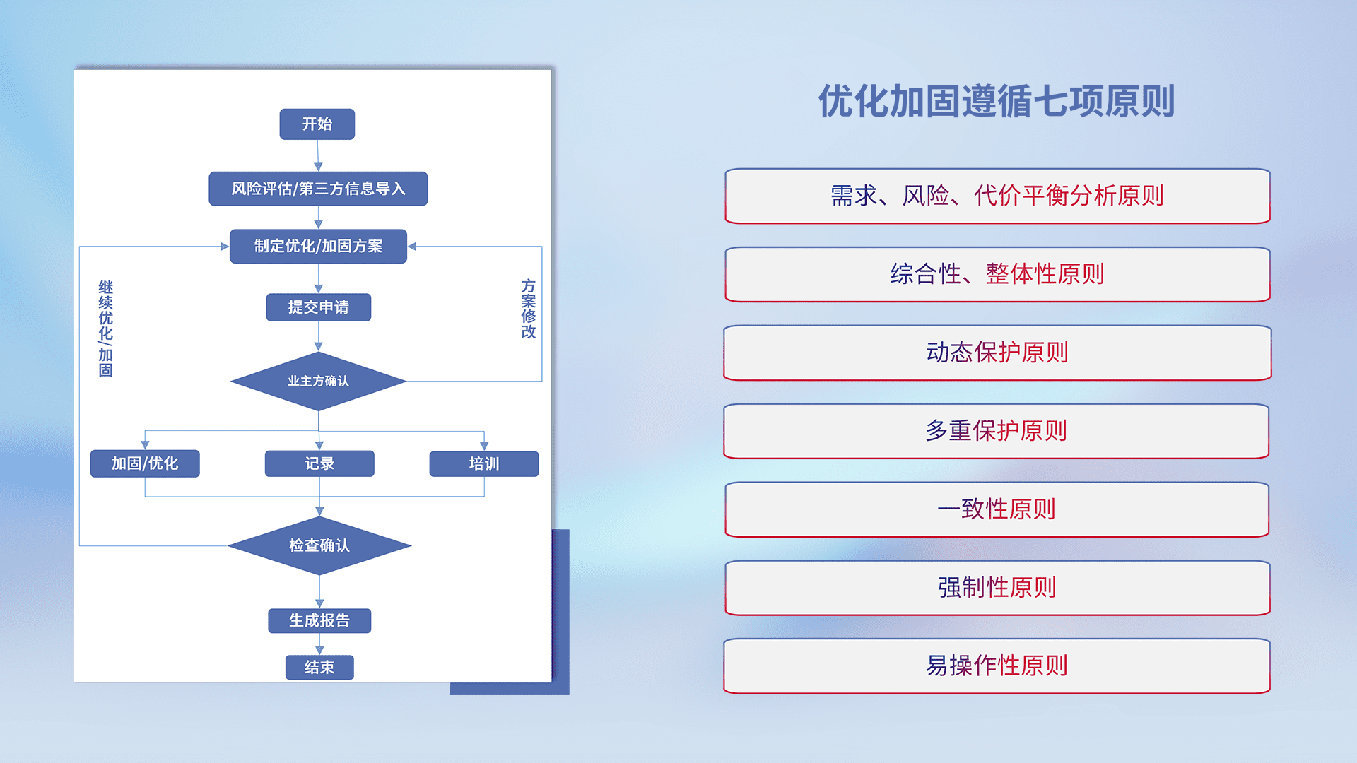 最大程度利用现有资产,,对评估发现的问题进行封堵与整改,,,,防止漏洞被利用,,提升整体网络安全性,,为客户带来高标准的优化加固服务。。
